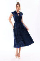 Платье длины миди из мягкого трикотажа выполнено широкий рубчик. Благодаря добавлению эластана материал обладает высокой формоустойчивостью, что обеспечивает комфорт при носке и сохранение первоначального вида после длительного использования. Полуприлегающая посадка подчеркивает фигуру, а длина рукава до локтя делает модель универсальной для любого времени года. Разрезы по бокам добавляют изящности и свободы движений, делая образ женственным и утонченным. Платье станет отличным выбором для создания разнообразных образов — от классического до повседневного стиля. Оно легко комбинируется с аксессуарами и обувью, позволяя вам экспериментировать с модными решениями.