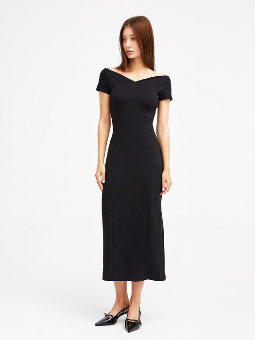 Вырез горловины кармен, обработан обтачкой из основного полотна.