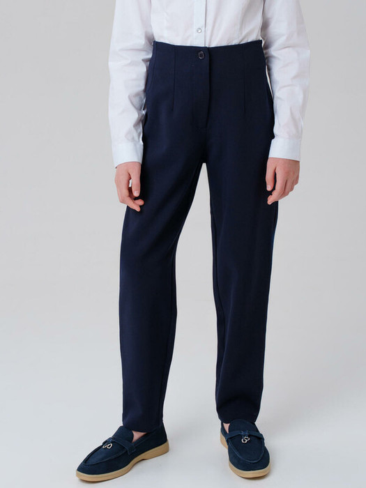 Классические темно-синие школьные текстильные брюки нон айрон для девочки.