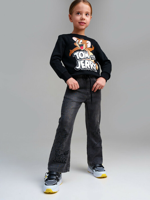 Джинсы детские для девочки. Джинсы из сверхудобного эластичного материала Loop Denim. Loop denim имеет внешний вид классической джинсы, а по тактильным ощущениям мягкий и комфортный, как трикотаж. FLARE FIT - джинсы клеш. Джинсы на резинке со шнурком. 4 кармана.