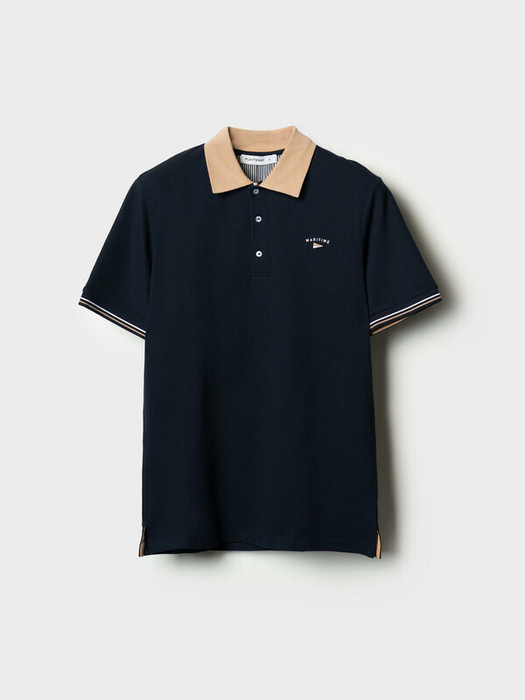 Мужская футболка-поло. Модель прямого кроя, средней длины с короткими рукавами. Выполнена из мягкого, хлопкового трикотажа пике. На груди расположен аккуратный принт. Застежка на три пуговицы. По бокам — небольшие разрезы с контрастной отделкой.
