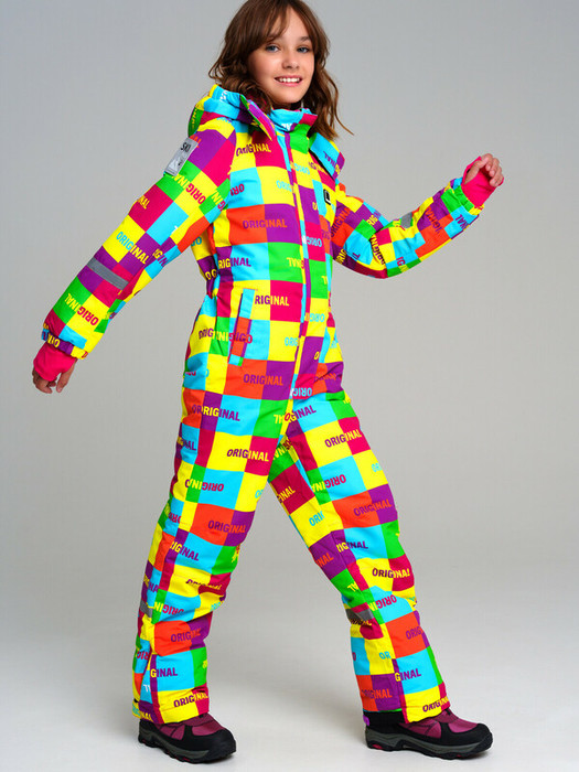 Мембранный материал делает этот яркий и модный комбинезон непромокаемым: мембрана не пропускает влагу снаружи, но выводит её изнутри, что крайне важно во время подвижных игр и занятий спортом.