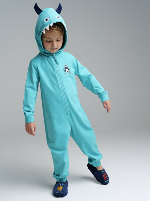 Комбинезон из эластичного трикотажа с высоким содержанием хлопка 95%. Застежка на молнию, защитная планка и текстильный клапан. Манжеты в эластичный рубчик. Декорированный капюшон.