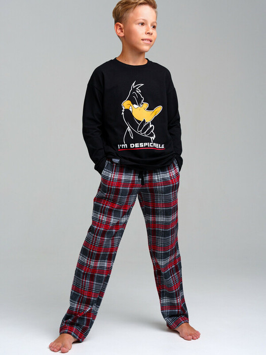 Пижама для мальчика подростка. Футболка из качественного и приятного на ощупь трикотажа джерси с высоким содержанием хлопка 95%. Благодаря наличию эластана в составе ткани изделие проще в уходе и держит форму. Брюки - 100% хлопок. Фланель - мягкая, приятная к телу ткань с небольшим начесом. Эластичный пояс с тесьмой позволяет легко надевать брюки и утягивать до комфортной посадки.