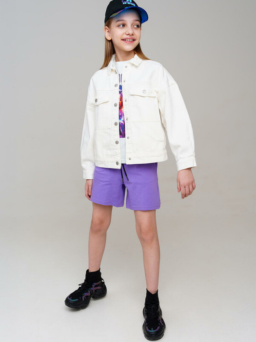 Джинсовка для девочки подростка. Куртка джинсовая из эластичного денима. Эластичный пояс с резинками внутри, растягиваясь и сокращаясь, мгновенно подстраивается под реальные размеры талии. Функциональные нагрудные и боковые карманы. Средняя длина. Застежка на кнопки.
