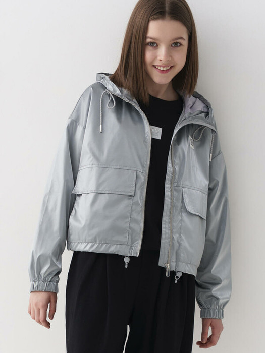 Укороченная ветровка для девочки подростка. Температурный режим от +20 до +10С. Ткань с ветрозащитным и водоотталкивающим покрытием. Внутри мягкая подкладка из трикотажа.  Спереди — два больших накладных кармана на кнопках. Манжеты на резинке. По низу утяжка на шнур. На спине и рукаве — светоотражающие элементы.