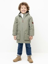 Рукава утеплены синтепоном для создания оптимального микроклимата в соответствии с температурным режимом ветровок на флисе. Материал верха c ветро- и водоотталкивающей пропиткой. Несъемный капюшон с декором в виде очков.