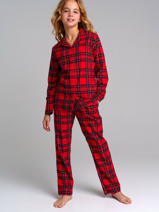 Пижама текстильная. 100% хлопок. Фланель - мягкая, приятная к телу ткань с небольшим начесом. Застежка на пуговицы. Карманы в брюках. Эластичный пояс с тесьмой позволяет легко надевать брюки и утягивать до комфортной посадки.