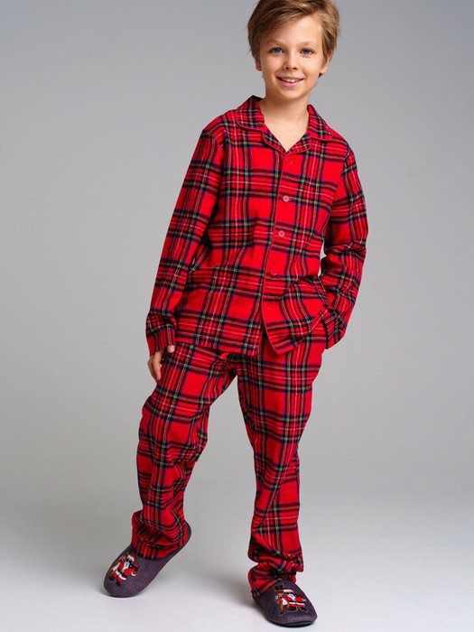 Пижама текстильная. 100% хлопок. Фланель - мягкая, приятная к телу ткань с небольшим начесом. Застежка на пуговицы. Карманы в брюках. Эластичный пояс с тесьмой позволяет легко надевать брюки и утягивать до комфортной посадки.