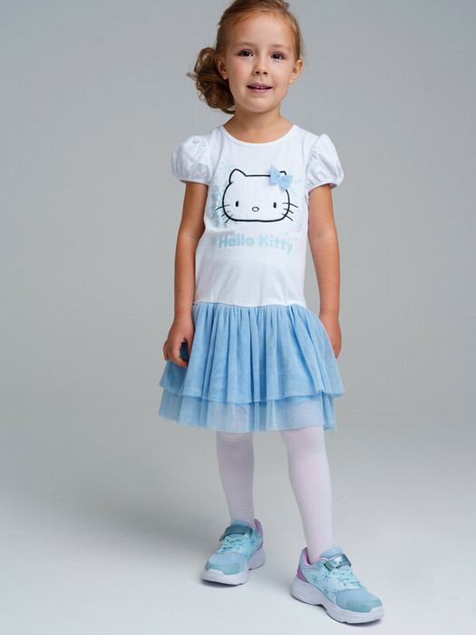 Платье трикотажное с юбкой из мягкой сетки. Верх платья из трикотажа с высоким содержанием хлопка 95%. Благодаря наличию 5% эластана в составе ткани изделие держит форму.