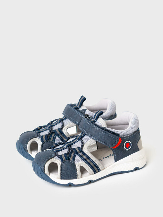 Сандалии для мальчика с закрытой носочной и пяточной частью выполнены из искусственного нубука и дышащего текстиля. Удобный ремень с липучкой позволяют регулировать обувь на любой подъем и позволяют ребенку обуваться самостоятельно. Текстильная подкладка c высоким содержанием хлопка 80% обладает высокой гигроскопичностью. Стелька выполнена из натуральной кожи и имеет анатомический элемент для поддержания свода стопы в правильном положении. Подошва из ТПР гибкая и нескользкая. Парфюмированная подошва имеет запах кокоса. В модели используются BIO-FIT TECHNOLOGY: фиксация пятки и стабилизация свода для правильного формирования стопы, увеличенная гибкость подошвы, подошва с улучшенной амортизацией, специальный рисунок протектора подошвы, имитирующий присоски осьминога для лучшего сцепления с дорогой.