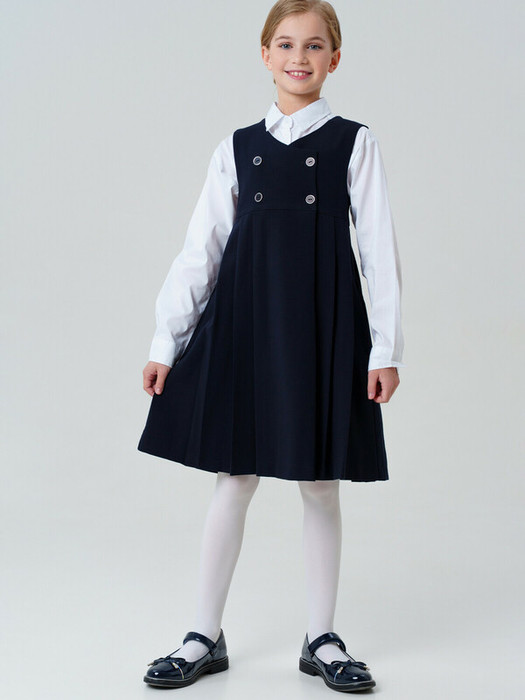 Темно-синее школьное текстильное платье сарафан для девочки-подростка