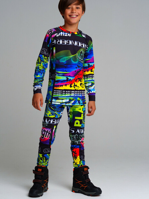 Термокомплект: брюки, лонгслив. Линия Nord до -20С. Идеальный вариант для активного отдыха. Материал, гладкий с лицевой стороны, с изнаночной стороны утеплен микроначесом. Эластан в составе обеспечивает комфортную носку и свободу движений. Благодаря смесовому составу ткани и плетению термобелье отводит лишнюю влагу, сохраняя комфортный микроклимат под одеждой. *температурный режим является рекомендованным, необходимо учитывать уровень активности ребенка и многослойность  одежды (флис, верхняя одежда).