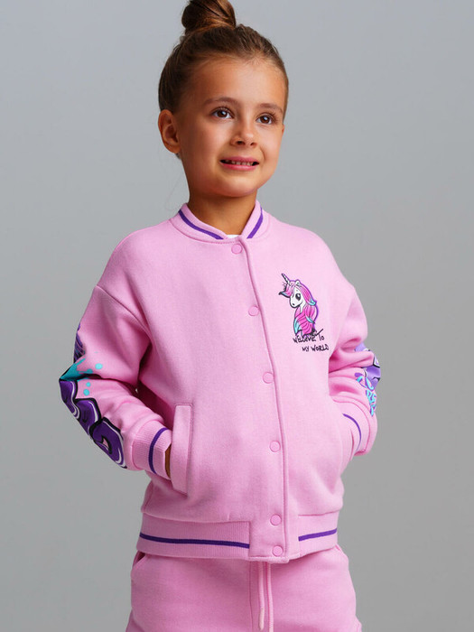 Толстовка детская из футера с начесом для девочки. Модный бомбер с высоким содержанием хлопка. Модель из капсульной коллекции UNICORN KUROMI (ЮНИКОРН КОРОМИ). Соберите полный образ в едином стиле!  толстовка будет актуальна для детского сада, в садик, для прогулок.  Модель выполнена из качественного и приятного на ощупь трикотажа.