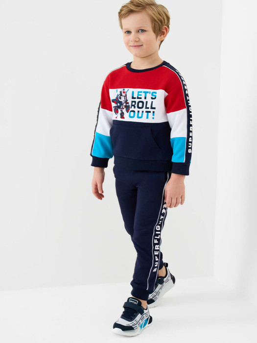 Детский свитшот оверсайз для мальчика. Выполнен из хлопкового футера без начеса. На груди и рукавах — яркий принт. Удобный карман-кенгуру. Горловина, манжеты и низ изделия выполнены из эластичного риба, что обеспечивает комфортную посадку.
