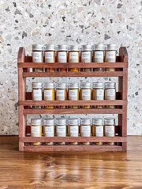 Айдиго BOX» - это подарочный набор ароматных специй и приправ для близких, друзей и коллег. В набор входит 21 стеклянная колба в деревянной подставке с самыми востребованными составами. Набор украсит интерьер любой кухни. А благодаря тому, что все специи и приправы будут собраны в одном месте, пользоваться им очень удобно.