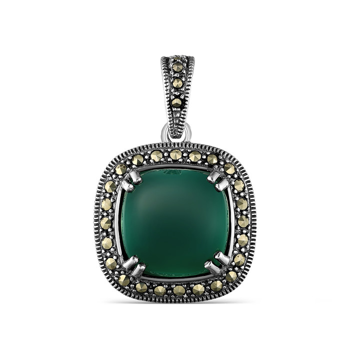 Совместные покупки Каменск-Уральский Ювелирные украшения и бижутерия Подвески — Подвеска из чернёного серебра с нат. агатом и марказитами 925 пробы MN00675G-AG-
