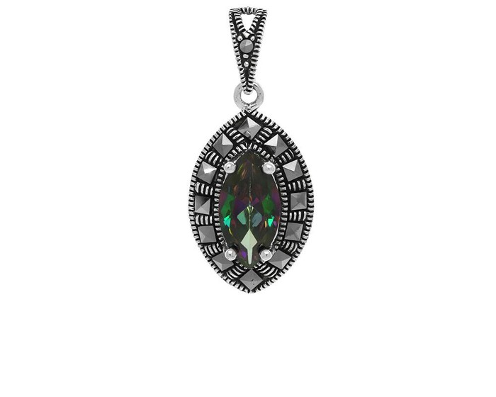 Подвеска из серебра марказит, мистик кварц, SL-AGA1553
