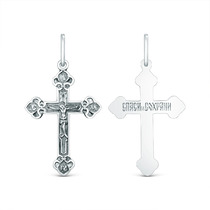 Крест православный из чернёного серебра - Спаси и сохрани 3,3 см 925 пробы 00-00
