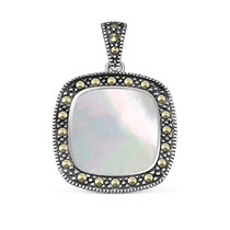 Подвеска женская из чернёного серебра с натуральным белым перламутром и марказит