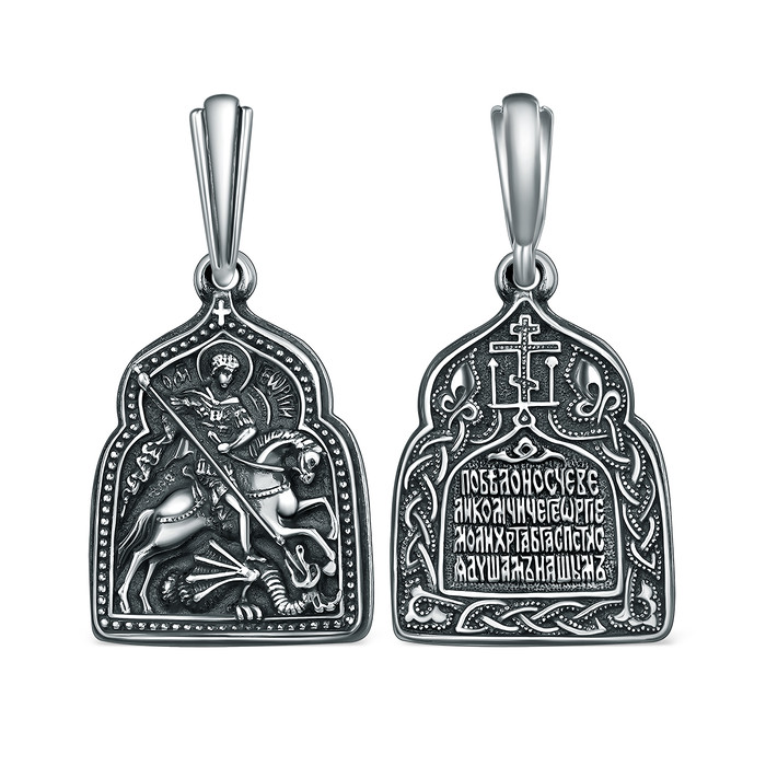 Подвеска религиозная из чернёного серебра - Георгий Победоносец 925 пробы К3-043