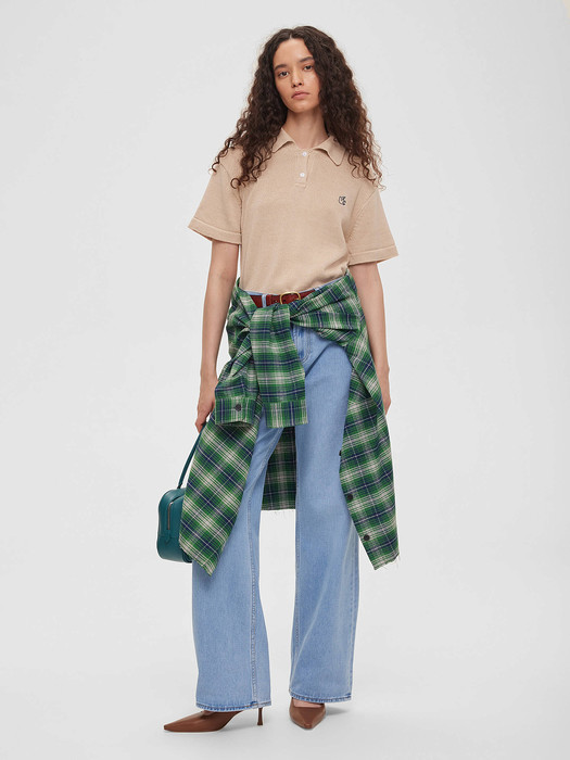Поло с коротким рукавом, отложным воротником, застежкой на пуговицы и контрастной вышивкой по переду.