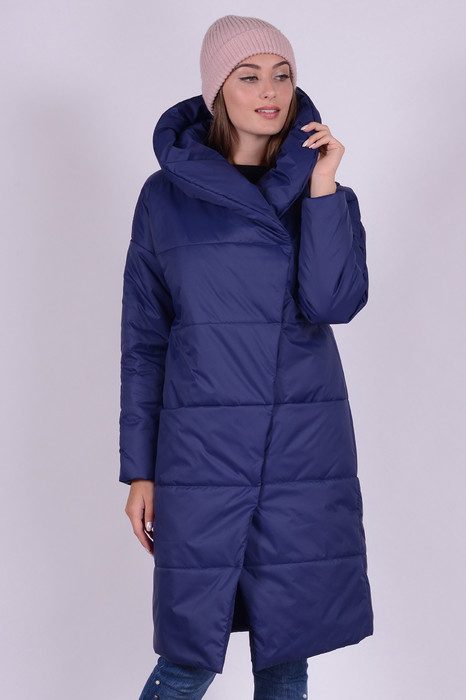 Ультрамодное демисезонное женское полупальто-"одеяло" с большим шалевым капюшоном, удлиненным по переду низом и асимметричной застежкой на потайные кнопки. При желании, капюшон легко трансформируется в воротник-стойку. Карманы расположены в стежке . Рост фотомодели 173 см Длина пальто по спинке ок.98см. Длина рукава от горловины ок.71 см. Рост 170 см Состав: полиэстер - 100%, утеплитель: Air Twin Light 100 г/m2 Р-ры 42-52 цвет: синий Цвет одежды может незначительно отличаться от оригинала.