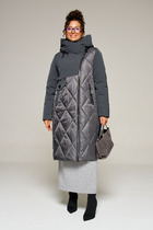 Стильное полупальто, выполненное из нового вида ткани с матовой поверхностью в оригинальных цветах. Застежка на молнию с кнопками, высокий утеплённый воротник, переходящий в большой капюшон. В модели использована модная асимметричная стёжка. Силуэт прямой, зауженный к низу, линия низа фигурная.Удобные прорезные карманы с широкой листочкой. Длина пальто по спинке ок. 94 см, по переду ок. 89 см. Длина рукава ок.65 см. Рост 170 смР-ры 42-52Состав: полиэстер 100%Утеплитель: Air Twin Light 100 г/m 2Цвет - черника
