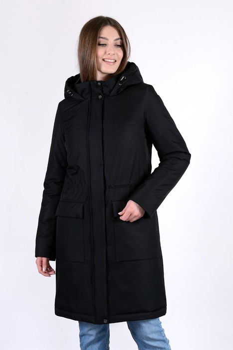 Современное утепленное полупальто-парка прямого силуэта, модель выполнена из ткани с умеренной плотностью, которая хорошо держит форму, износоустойчива и неприхотлива в чистке. Центральная застежка на молнию дополнена планкой и фирменными кнопками. Карманы накладные с клапанами. Талию подчеркивает регулируемая кулиса со шнуром. Капюшон при желании так же регулируется шнурком. В изделии использована система утепления Air Twin (от 0 °С до -20 °С)   В изделии использована система утепления Air Twin (от 0 °С до -20 °С) Длина пальто по спинке ок.94см. Длина рукава ок.65 см. Рост 170 см Состав: полиэстер - 100%, утеплитель: Air Twin  150 г/m 2 Цвет:черный Цвет одежды на фотографиях может незначительно отличаться от оригинального.