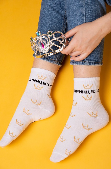 Белые женские носки с надписью Принцесса — стильная база, которая легко впишется в повседневный образ и точно поднимет настроение!