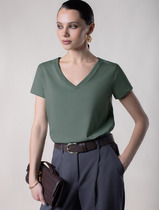 09.04 Vilatte Футболка из премиального хлопка с V-образным вырезом D49.109 олив
