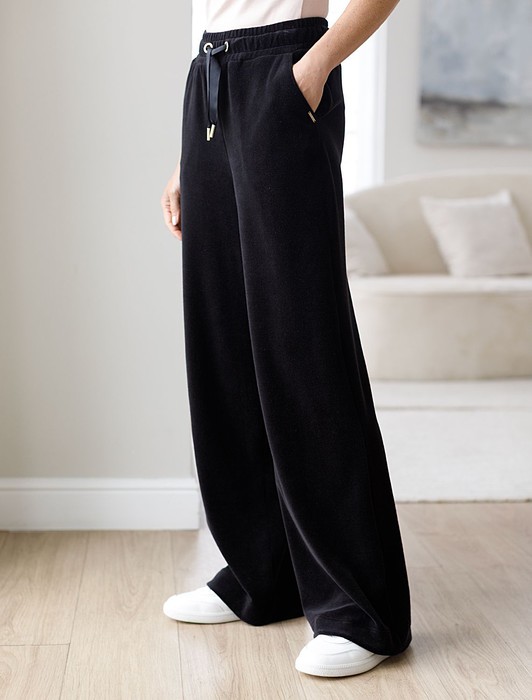 Состав: 80%Хлопок 20%ПЭ Плотность: 240 Г/м2 Параметры модели на первом фото: Рост 170, бюст 83, талия 64, бедра 88Прямые брюки выполнены из велюра. Модель с широким поясом дополнена шнурком из репсовой ленты и серебристой фурнитурой. Легкий и мягкий материал с матовой фактурой придает изделию нежность и комфорт. Хорошо держит тепло и форму – идеальное решение для домашнего отдыха. Сочетается в костюме с худи D49.053