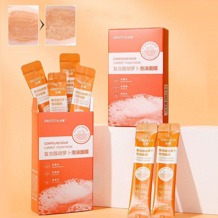 Совместные покупки Каменск-Уральский Косметика и парфюмерия Прочий макияж — Пузырьковая маска для лица с экстрактом МОРКОВИ Beotua, НАБОР 12 ШТ. по 4 мл.