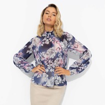 Прозрачность - тренд 2025 года. Блузка с синими и красными цветами, с объемными рукавами покроя реглан на манжетах прекрасно впишется в любой гардероб. Шифоновая блузка с планкой на пуговицах, с V-образной горловиной и воротником-стойкой с удлинёнными концами, которые завязываются на бант, прекрасно сидит на фигуре, прямой крой вещи вытягивает силуэт, скрывает несовершенства и подчёркивает достоинства. Полупрозрачная прямая модель подойдет на лето для носки в теплую погоду, зимой под жакет, жилет, кардиган, прекрасно сочетается как с классическими брюками и юбками, так и с джинсами.