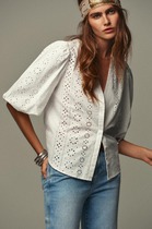 Блузка с рукавом реглан и манжетой на пуговице. Воротник стойка с застежкой на 2 пуговицы. Сборка от воротника по переду.