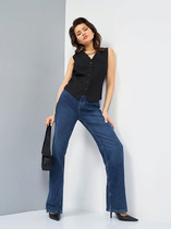 Женские ретро джинсы с пятью карманами с использованием лучших традиций 90-х. Посадка Сomfort fit ( свободные по бедру). Супервысокая талия спереди и сзади, свободные и широкие по всей длине. Застежка на молнии. Выполнены из слабоэластичной ткани denim comfort stretch. Средняя стирка с камнями (stone wash) со слабовыраженными потёртостями спереди и сзади. Параметры указаны для размера 28.Длина внутреннего шва - 82,0 см.