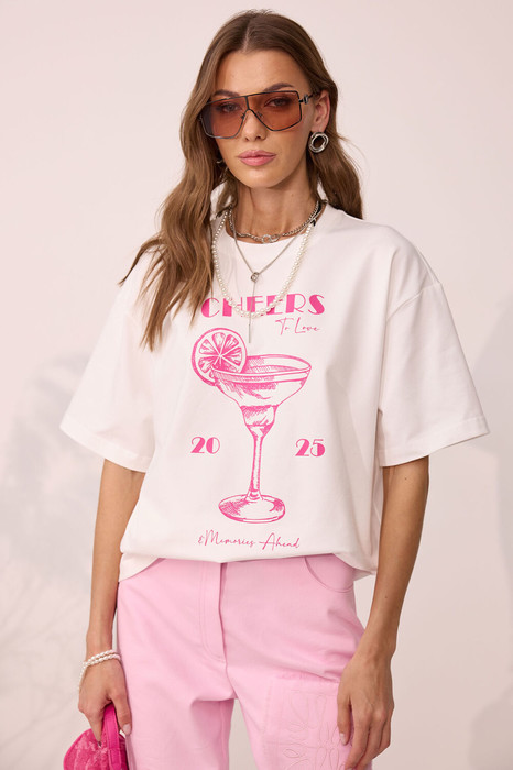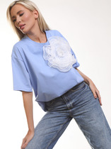 Джемпер женский свободного силуэта из комфортного трикотажного полотна, длиной до линии бедер. Горловина округлая. Рукав со спущенной линией плеча длиной до локтя. По переду расположена дизайнерская печать.Обращаем ваше внимание, что фурнитура может отличаться от фото.