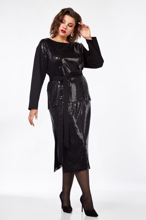 Костюм женский состоящий из прямого джемпера и юбки в пайетки.