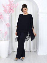 Комплект 2-ка, состоящий из жилета и брюк. Жилет с отложным воротником и поясом. Перед жилета на запах с застёжкой на кнопки, на плечах декоративные паты. По бокам жилета выполнена имитация клапанов карманов. Брюки прямого силуэта на эластичной резинке по талии. По переду расположены карманы с наклонным входом.