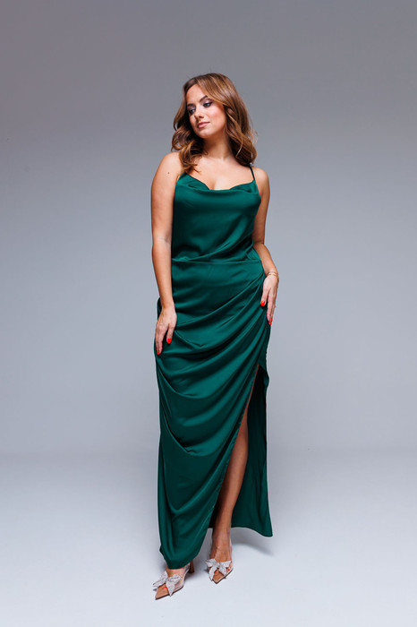 Платье-комбинация макси атлас изумруд