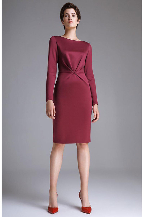 Элегантное приталенное платье из бархатистого трикотажа длиной до середины колена. Необычно заложенные симметричные складки на талии подчеркивают женственный силуэт. Длинные рукава, застёгивается платье на потайную молнию сзади.