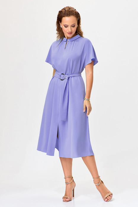 Нежное, лёгкое, комфортное платье А-образного силуэта, выполнено из лёгкой, приятной однотонной ткани. Модель с цельнокроёными рукавами, заканчивающимися разрезами, со щелевидным вырезом со сборкой по горловине переда, отложным воротником с застёжкой на навесную петлю и ювелирную пуговицу и очень женственным разрезом в среднем шве переда. Для создания приталенного силуэта предусмотрен интересный пояс в тон, красиво подчёркивающий талию.