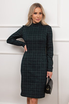 Платье женское повседневное полуприлегающего силуэта расширеное к низу вполнено из трикотажного полотна двух дизайнов. Вырез горловины мягкая обтачка из отделочной ткани, по спинке застежка на одну пуговицу и навесную петлю. Рукав реглан по низу на широкой притачной манжете из отделочной ткани. В боковых швах обработаны карманы, по центральной части полочки небольшие разрезы Декором платья служит анималистический принт.