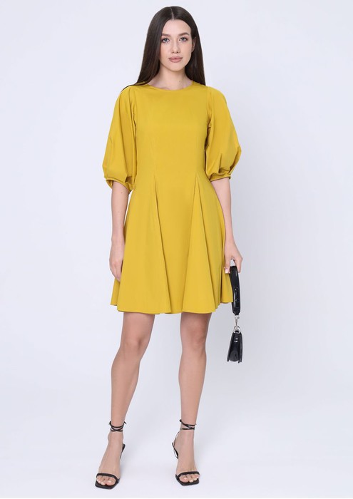 Летнее хлопковое платье станет основой для создания красивых образов. Надевая его на прогулку, дружескую или романтическую встречу, можете быть уверены, что выглядите элегантно. Уместно дополнить наряд обувью на каблуках или низком ходу, аксессуарами. Женское хлопковое платье длиной выше колена имеет полуприталенный фасон. Фигурные вертикальные швы по лифу переходят в симметричные парные складки на свободной юбке. Оригинальность изделию придают пышные втачные рукава на манжетах. Легкая ткань из 100% хлопка, из которой пошито мини платье, максимально пропускает воздух, обеспечивая комфорт в жару. Спешите купить легкое короткое платье на выгодных условиях.