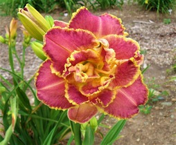 Раннеспелый сорт редиса с необычной фиолетовой окраской. Корнеплод округлой формы, очень крупный, диаметром до 3 см. Вкусовые качества очень высокие, мякоть белая, хрустящая, сочная, малоострая. Сорт устойчив к цветушности, рекомендуется для ранневесенней и летней посадки. Корнеплоды не растрескиваются и долго сохраняют товарные качества.