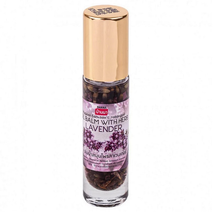 Жидкий масляный бальзам-ингалятор из Таиланда Banna с эфирными маслами и лавандой в стеклянном карандаше с роликовым дозатором поможет вам быстро избавиться от головных болей, мигрени, тошноты и головокружения.Ингалятор весьма эффективно справляется с укачиванием и морской болезнью. Повышает концентрацию внимания, придаёт энергии и сил.Эффективен при симптомах начинающейся простуды и гриппа, острых респираторно-вирусных заболеваниях, ОРВИ, ОРЗ. Облегчает дыхание при простудных заболеваниях, насморке, заложенности носа.Бальзам состоит из комплекса эфирных масел, целебных трав и растений, имеет приятный и достаточно сильный, освежающий запах. Подобная ароматерапия оказывает отличное действие на нервную систему, расслабляя организм, позволяет быстро снять чувства тревоги и беспокойства, снимает нервное напряжение и успокаивает.Масляный бальзам - ингалятор так же весьма эффективен для обработки свежих ссадин, царапин и следов от укусов насекомых.Активные ингредиенты Тайского бальзама ингалятора Банна с Лавандой: - камфорное масло оказывает тонизирующие действие и улучшает вентиляцию легочных альвеол, облегчая дыхание;- масло эвкалипта обладает антисептическим и противовоспалительным свойствами;- ментоловое масло поможет избавиться от головной боли;- масло лаванды снимает нервное напряжение и успокаивает.Показания к применению жидкого масляного бальзама ингалятора из Тайланда с Лавандой от Банна:- при первых признаках насморка или простуды;- при гриппе, бронхите, ОРЗ, ОРВИ;- при синусите;- при астме;- при синдромах морской болезни;- при бессоннице, вялости и расстройствах нервной системы;- при головных болях и мигрени;- при укачивании;- для обработки свежих ссадин, царапин и следов от укусов насекомыхТайский ингалятор с ананасом поможет не только при заболеваниях дыхательных путей, но и при бессоннице, вялости и расстройствах нервной системы.Способ применения тайского ингалятора с ананасом:• Головная боль – втирать в виски.• Насморк – нанести на кожу под носом, смазать крылья носа.• Тошнота, головокружение – виски, переносица.• Повышенное давление – нанести на затылочную кость.• После применения не забывать закрывать крышку – эфирные масла очень быстро испаряются.