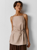 21.04 Vilatte Укороченная свободная блузка с завязками и с V-вырезом изо льна с