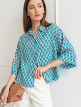 Акция Vilatte Летящая блузка из премиальной вискозы и лиоцелла D29.221 морская