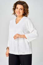 Блузка женская прямого силуэта, свободного облегания. Характеристика: Воротник отложной на стойке. Рукав одношовный, втачной, со спущенной линией плеча. На переде по линии груди настрочены прямоугольные накладные карманы. Спинка цельная. В боковых швах обработаны разрезы. Застежка центральная, цельнокроеная планка, застегивающаяся на пробивные петли, пришивные пуговицы. На манжетах декоративная пуговица. Длина рукава 60 см, длина плеча 20 см, длина блузы по спинке 69 см.