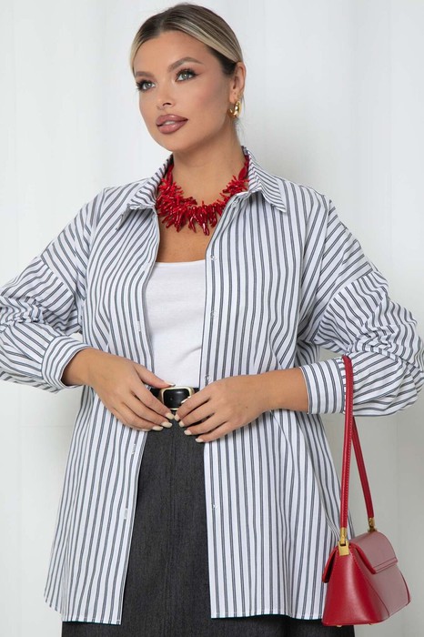 Совместные покупки Каменск-Уральский Женская одежда Блузки, рубашки — Рубашка Леди Агата П-2185/16 белый с черным